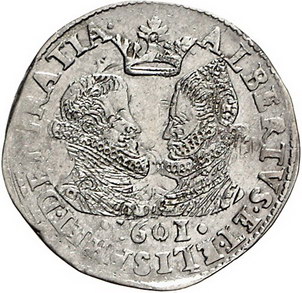 Los-Nummer: Auktion 51 - 2888 Ausländische Münzen und Medaillen Belgien-Brabant Albert und Isabella 1598-1621, 1/2 Florin d'argent 1601, Antwerpen. Van Gelder-Hoc 288-1, Delmonte 240 (R1) , Fd. Herborn 969 (dieses Ex.). Sehr schön + Schätzpreis: 300,- Zuschlag: unverkauft |