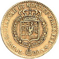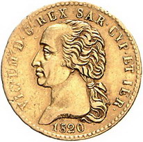Los-Nummer: Auktion 51 - 3236 Ausländische Münzen und Medaillen Italien-Sardinien Vittorio Emanuele I. 1802-1821, 20 Lire 1820, Turin. Pagani 8, Friedberg 1129. GOLD. Sehr schön Schätzpreis: 400,- Zuschlag: 375,- |
