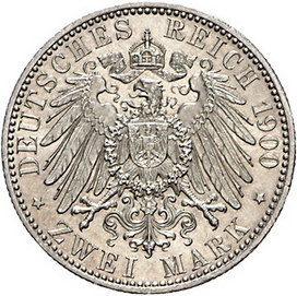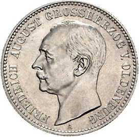 Los-Nummer: Auktion 51 - 2636 Münzen des Deutschen Kaiserreichs Oldenburg Friedrich August 1900-1918, 2 Mark 1900 A. Jaeger 94. Winz. Kratzer, vorzüglich - Stempelglanz Schätzpreis: 350,- Zuschlag: unverkauft |