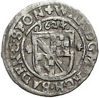 Los-Nummer: Auktion 51 - 61 Altdeutsche Münzen und Medaillen Baden-Baden Wilhelm 1622-1677, 3 Kreuzer 1624. Wielandt 275 var. Sehr schön Schätzpreis: 175,- Zuschlag: 160,- |