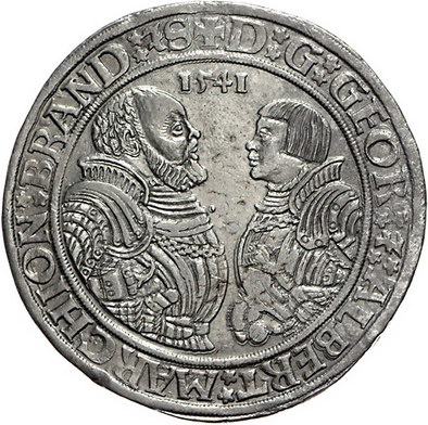 Los-Nummer: Auktion 51 - 165 Altdeutsche Münzen und Medaillen Brandenburg-Franken Georg und Albrecht 1527-1543, Taler 1541, Schwabach. v. Schrötter 696 a, Davenport 8967. Sehr schön - vorzüglich Schätzpreis: 250,- Zuschlag: 310,- |