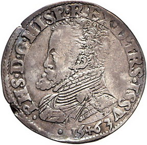 Los-Nummer: Auktion 51 - 3517 Ausländische Münzen und Medaillen Niederlande-Overijssel Philippe II. 1555-1598, 1/5 Ecu 1563, Hasselt. v. Gelder-Hoc 212-17 b , Fd. Herborn 963 (dieses Exemplar). Sehr schön Schätzpreis: 50,- Zuschlag: 80,- |