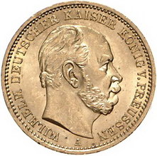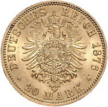 Los-Nummer: Auktion 51 - 2644 Münzen des Deutschen Kaiserreichs Preußen Wilhelm I. 1861-1888, 20 Mark 1876 A. Jaeger 246. GOLD. Prachtexemplar. Winz. Randfehler, Stempelglanz Schätzpreis: 300,- Zuschlag: unverkauft |