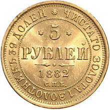 Los-Nummer: Auktion 51 - 3845 Ausländische Münzen und Medaillen Russland Alexander III. 1881-1894, 5 Rubel 1882, St. Petersburg. Münzmeister Nicholai Follendorf. Harris 425, Friedberg 165, Bitkin 2. GOLD. Winz. Randfehler, vorzüglich + Schätzpreis: 2000,- Zuschlag: unverkauft |
