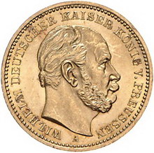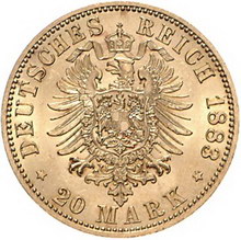 Los-Nummer: Auktion 51 - 2645 Münzen des Deutschen Kaiserreichs Preußen Wilhelm I. 1861-1888, 20 Mark 1883 A. Jaeger 246. GOLD. Prachtexemplar. Winz. Randfehler, Stempelglanz Schätzpreis: 350,- Zuschlag: unverkauft |