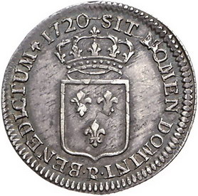 Los-Nummer: Auktion 51 - 2998 Ausländische Münzen und Medaillen Frankreich Ludwig XV. 1715-1774, 1/3 Ecu de France 1720 R, Orléans. Gadoury 306. Fast vorzüglich Schätzpreis: 250,- Zuschlag: 200,- |