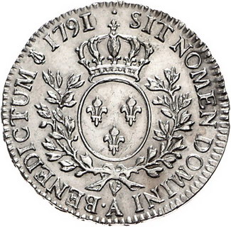 Los-Nummer: Auktion 51 - 3007 Ausländische Münzen und Medaillen Frankreich Ludwig XVI. 1774-1793, 1/2 Ecu 1791 A, Paris. Gadoury 355. Fast vorzüglich Schätzpreis: 150,- Zuschlag: 175,- |
