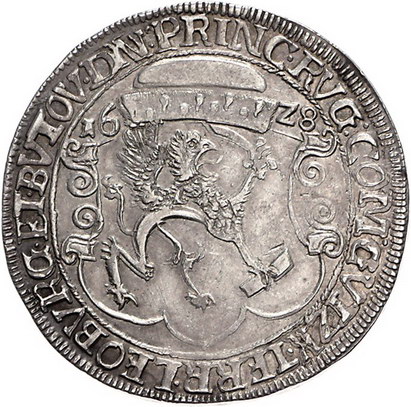 Los-Nummer: Auktion 51 - 1384 Altdeutsche Münzen und Medaillen Pommern-nach der Vereinigung Bogislaw XIV. 1620-1637, Taler 1628. Geharnischtes Brustbild nach rechts / Verzierter Greifenschild unter Fürstenhut zwischen geteilter Jahreszahl. Hildisch 341, Davenport 7246 A. Sehr schön Schätzpreis: 2000,- Zuschlag: 1900,- |