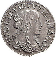 Los-Nummer: Auktion 51 - 3183 Ausländische Münzen und Medaillen Italien-Fosdinovo Maria Magdalena Centurioni Malaspina 1667-1669, Luigino 1666. HAEC EST VIRTVTIS IMAGO Frauenkopf nach rechts / DEVS MEVS ET OMNIA Gekröntes Lilienwappen. Cammarano 65. Zainende, vorzüglich Schätzpreis: 175,- Zuschlag: unverkauft |