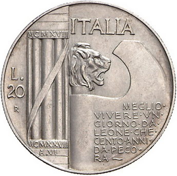Los-Nummer: Auktion 51 - 3167 Ausländische Münzen und Medaillen Italien-Königreich Vittorio Emanuele III. 1900-1946, 20 Lire 1928. Jahr 6. Auf das Ende des Ersten Weltkrieges vor 10 Jahren. K.M. 70, Davenport 146, Pagani 680. Kl. Kratzer, vorzüglich + Schätzpreis: 250,- Zuschlag: 240,- |