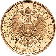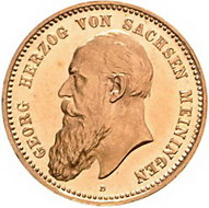 Los-Nummer: Auktion 51 - 2710 Münzen des Deutschen Kaiserreichs Sachsen-Meiningen Georg II. 1866-1914, 10 Mark 1898 D. Jaeger 278. GOLD. Prachtexemplar. Fast Stempelglanz Schätzpreis: 6000,- Zuschlag: unverkauft |