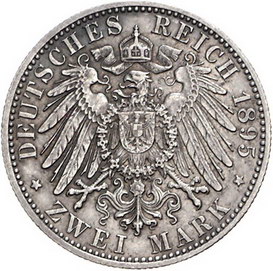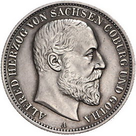 Los-Nummer: Auktion 51 - 2698 Münzen des Deutschen Kaiserreichs Sachsen-Coburg-Gotha Alfred 1893-1900, 2 Mark 1895 A. Jaeger 145. Berieben, sehr schön + Schätzpreis: 500,- Zuschlag: unverkauft |
