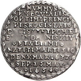Los-Nummer: Auktion 51 - 1386 Altdeutsche Münzen und Medaillen Pommern-nach der Vereinigung Bogislaw XIV. 1620-1637, 1/8 Taler 1654, Stettin. Auf seine Beisetzung. Baumstumpf unter strahlender Sonne mit zwei neuen Trieben / Schrift. Hildisch 387, Slg. Pogge 409. Schöne Patina. Winz. Henkelspur, fast vorzüglich Schätzpreis: 300,- Zuschlag: 560,- |
