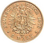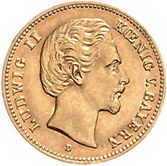 Los-Nummer: Auktion 51 - 2588 Münzen des Deutschen Kaiserreichs Bayern Ludwig II. 1864-1886, 5 Mark 1878 D. Jaeger 195. GOLD. Fast vorzüglich Schätzpreis: 900,- Zuschlag: 975,- |
