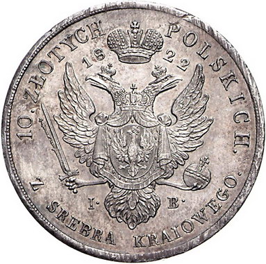 Los-Nummer: Auktion 51 - 3769 Ausländische Münzen und Medaillen Russland Alexander I. 1801-1825, 10 Zloty 1822, Warschau. Für Polen. Büste des russischen Zaren nach rechts / Gekrönter Doppeladler mit aufgelegtem Adlerschild, oben geteilte Jahreszahl, unten geteilt Stempelschneidersignatur I-B. Bitkin 821, Gumowski 2525, Kopicki 2717 (R5), Davenport 248, K.M. 101.1. Auflage nur 233 Stück. Prachtexemplar. Herrliche Patina. Justierspuren am Rand, fast Stempelglanz Schätzpreis: 30000,- Zuschlag: unverkauft |