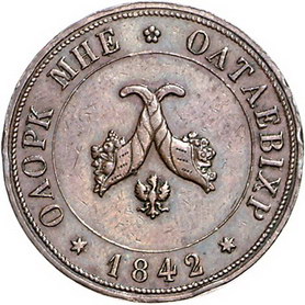 Los-Nummer: Auktion 51 - 3807 Ausländische Münzen und Medaillen Russland Nikolaus I. 1825-1855, Cu Probe zu einer Poltina 1842, St. Petersburg? Krone / Zwei Füllhörner. Hauser 882. 28,7 m. Kl. Randfehler, sehr schön + Schätzpreis: 300,- Zuschlag: 240,- |