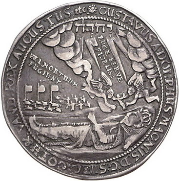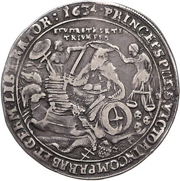 Los-Nummer: Auktion 51 - 1388 Altdeutsche Münzen und Medaillen Pommern-unter schwedischer Besetzung Gustav II. Adolf 1631-1632, Halbtaler 1634. Auf seinen Tod. Gustav Adolph im Triumphwagen / Der aufgebahrte König. S.B. 15. Sehr schön Schätzpreis: 600,- Zuschlag: unverkauft |