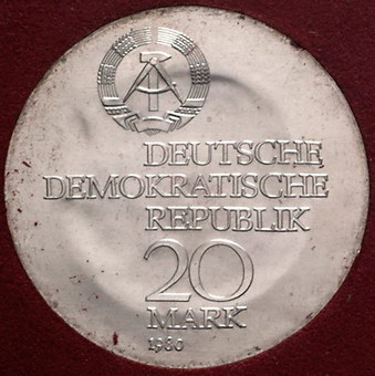 Los-Nummer: Auktion 51 - 2796 Deutsche Demokratische Republik 20 Mark 1980. Abbe. Mit Gegenstempel Sportler. Jaeger zu 1575. Stempelglanz Schätzpreis: 150,- Zuschlag: unverkauft |