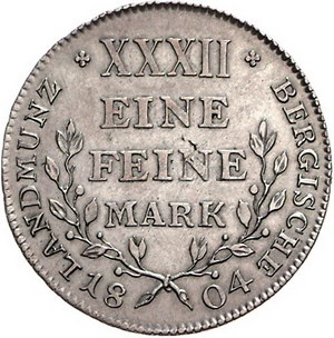 Los-Nummer: Auktion 51 - 957 Altdeutsche Münzen und Medaillen Jülich-Berg Maximilian Joseph von Bayern 1799-1806, 1/2 Taler 1804. Jaeger 162, AKS 3, Kahnt 134. Sehr schön - vorzüglich Schätzpreis: 250,- Zuschlag: 320,- |