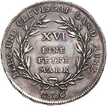 Los-Nummer: Auktion 51 - 958 Altdeutsche Münzen und Medaillen Jülich-Berg Maximilian Joseph von Bayern 1799-1806, Taler 1806. Jaeger 167, Thun 109, AKS 2, Kahnt 136 , Davenport 623. Patiniert. Kl. Kratzer, sehr schön - vorzüglich Schätzpreis: 400,- Zuschlag: 850,- |