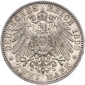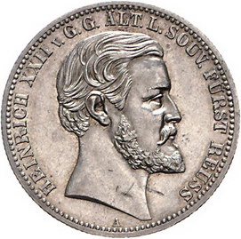 Los-Nummer: Auktion 51 - 2661 Münzen des Deutschen Kaiserreichs Reuss, ältere Linie Heinrich XXII. 1859-1902, 2 Mark 1892 A. Jaeger 117. Winz. Kratzer, fast vorzüglich Schätzpreis: 350,- Zuschlag: 525,- |