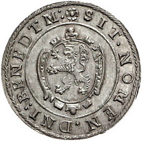 Los-Nummer: Auktion 51 - 98 Altdeutsche Münzen und Medaillen Bayern Maximilian I., als Herzog 1598-1623, Kipper 24 Kreuzer o.J. (1620). Verzierter Weckenschild / Löwe in verziertem Wappen nach links. Hahn 59. Prachtexemplar. Vorzüglich + Schätzpreis: 400,- Zuschlag: 350,- |
