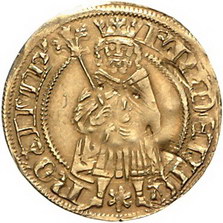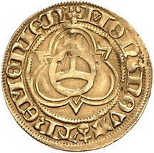 Los-Nummer: Auktion 51 - 748 Altdeutsche Münzen und Medaillen Dortmund Friedrich III. 1440-1493, Goldgulden o.J. mit Kaisertitel. Stehender Kaiser mit Zepter, zwischen den Füßen Stern / Reichsapfel in Dreipass, am Anfang der Umschrift große Rosette, Trennungszeichen Reichsäpfel. Berghaus 111, Friedberg - vergl. 855. GOLD. Winz. Kratzer, sehr schön Schätzpreis: 750,- Zuschlag: 750,- |