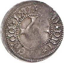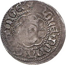 Los-Nummer: Auktion 51 - 835 Altdeutsche Münzen und Medaillen Göttingen, Stadt Körtling 1465. MONE*NOVA*GOTTINGE Gotisches E in Achtpass / ANO*DNI*/M*CCCC*LXV Gotisches E auf Kreuz. Schrock 11 a , Levinson 94. Schöne Patina, Prägeschwäche, sehr schön Schätzpreis: 175,- Zuschlag: 160,- |