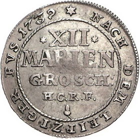 Los-Nummer: Auktion 51 - 836 Altdeutsche Münzen und Medaillen Goslar, Stadt 12 Mariengroschen 1739. BBK 318. Stempelfehler, sehr schön Schätzpreis: 200,- Zuschlag: 210,- |