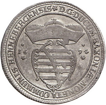 Los-Nummer: Auktion 51 - 908 Altdeutsche Münzen und Medaillen Henneberg, Grafschaft Gemeinschaftsprägungen nach der Teilung 1691-1702, Ausbeute 2/3 Taler 1694, Ilmenau. Müseler 56.6/9, Slg. Merseburger 4352, Davenport 868. Sehr schön Schätzpreis: 175,- Zuschlag: 190,- |
