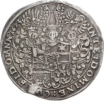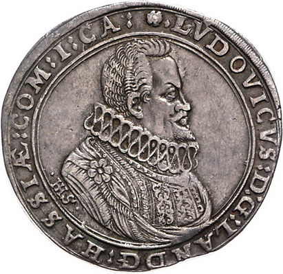 Los-Nummer: Auktion 51 - 921 Altdeutsche Münzen und Medaillen Hessen-Darmstadt Ludwig V. 1596-1626, Taler 1623 IHS. Münzmeister Johann Henning Schlüter. Brustbild mit Mühlsteinkragen nach rechts, darunter Stempelschneiderinitialen / Dreifach behelmtes sechsfeldiges Wappen mit Mitteschild. Schütz 2696, Davenport 6796. Der übliche Stempelfehler. Sehr schön + Schätzpreis: 600,- Zuschlag: 625,- |