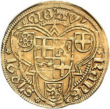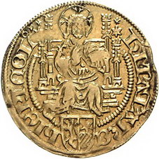 Los-Nummer: Auktion 51 - 976 Altdeutsche Münzen und Medaillen Köln, Erzbistum Hermann von Hessen 1480-1508, Goldgulden 1491, Deutz. Mit gotischer 4 in der Jahreszahl. Thronender Christus über Schild Hessen-Ziegenhain / Vierfeldiger Schild Köln-Hessen-Nidda-Köln in Dreipass, in den Winkeln die Wappen von Mainz, Trier und Pfalz. Noss 484 b-d, Friedberg 803 , Levinson 259 a. GOLD. Sehr schön - vorzüglich Schätzpreis: 750,- Zuschlag: 600,- |