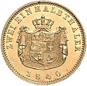 Los-Nummer: Auktion 51 - 1082 Altdeutsche Münzen und Medaillen Mecklenburg-Schwerin Paul Friedrich 1837-1842, 2 1/2 Taler 1840. Jaeger 81, AKS 31, Divo / Schramm 147 , Friedberg 1732. GOLD. Vorzüglich - Stempelglanz Schätzpreis: 1250,- Zuschlag: 1000,- |
