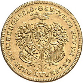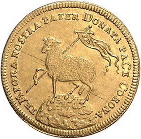 Los-Nummer: Auktion 51 - 1272 Altdeutsche Münzen und Medaillen Nürnberg, Stadt Doppelter Lammdukat 1700. Jahreszahl als Chronogramm. Kellner 51, Slg. Erlanger 585, Friedberg 1882 , Widhalm 9. GOLD. Schrötlingsfehler auf der Vorderseite, fast vorzüglich Schätzpreis: 750,- Zuschlag: 650,- |