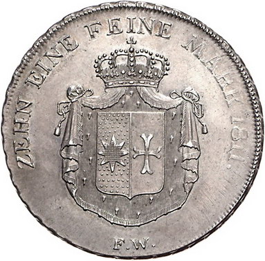 Los-Nummer: Auktion 51 - 1853 Altdeutsche Münzen und Medaillen Waldeck Georg Heinrich -, Taler 1811. Jaeger 11, Thun 403, AKS 11, Kahnt 545. Schöne Patina. Vorzüglich - Stempelglanz Schätzpreis: 2000,- Zuschlag: 2150,- |