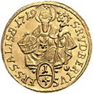 Los-Nummer: Auktion 51 - 2240 Haus Habsburg Salzburg, Erzbistum Franz Anton von Harrach 1709-1727, 1/4 Dukat 1719. Probszt 1988, Friedberg 742. GOLD. Vorzüglich - Stempelglanz Schätzpreis: 200,- Zuschlag: 190,- |