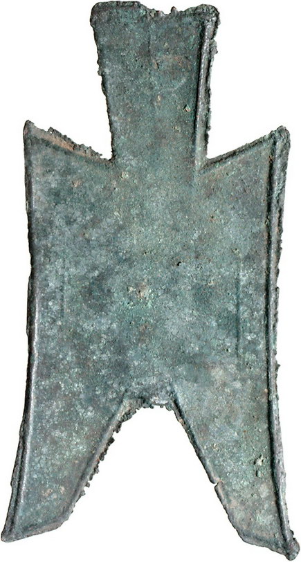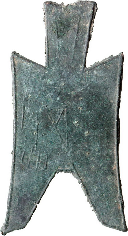 Los-Nummer: Auktion 51 - 2928 Ausländische Münzen und Medaillen China Chou Dynastie 1122-255 v. Chr. Vollwertiges spitzfüßiges Spatengeld, Bronze. Wert 1 Chin. Inschrift: 'Hsieh Shan' (Zauberberg Klan). Coole 5339. 84 x 45 mm, 16,42 g. Grünliche Patina. Dünnes Exemplar mit scharfen Rändern. Vorzüglich Schätzpreis: 300,- Zuschlag: unverkauft |