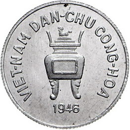 Los-Nummer: Auktion 51 - 4101 Ausländische Münzen und Medaillen Vietnam Ho Chi Minh 1945-1954, Aluminium 5 Hao 1946. Erhabene Schrift. K.M. 2.2. Vorzüglich - Stempelglanz Schätzpreis: 100,- Zuschlag: 100,- |