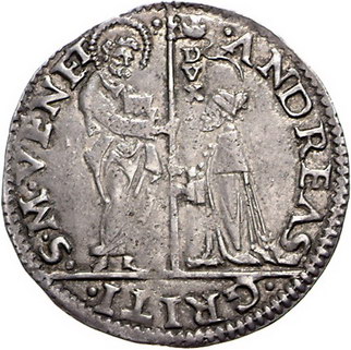 Los-Nummer: Auktion 51 - 3290 Ausländische Münzen und Medaillen Italien-Venedig Andrea Gritti 1523-1538, Mocenigo. Münzmeisterzeichen FF (Francesco Ferro, 1534). Gamberini 276. Sehr schön + Schätzpreis: 125,- Zuschlag: 120,- |