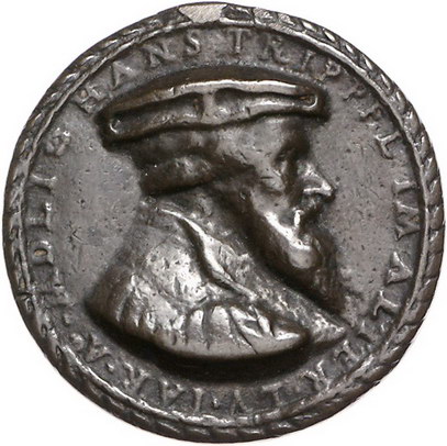 Los-Nummer: Auktion 51 - 1281 Altdeutsche Münzen und Medaillen Nürnberg, Stadt Medaillen, Bronzegussmedaille 1551, von Hans Bolsterer. Auf Hans Trippel. Bärtiges Brustbild im Alter von 55 Jahren mit Kappe nach rechts / Behelmtes Wappen. Habich I 2, 1789 (nach diesem Exemplar). 41,5 mm. Späterer Guss. Henkelspur, sehr schön Schätzpreis: 100,- Zuschlag: unverkauft |