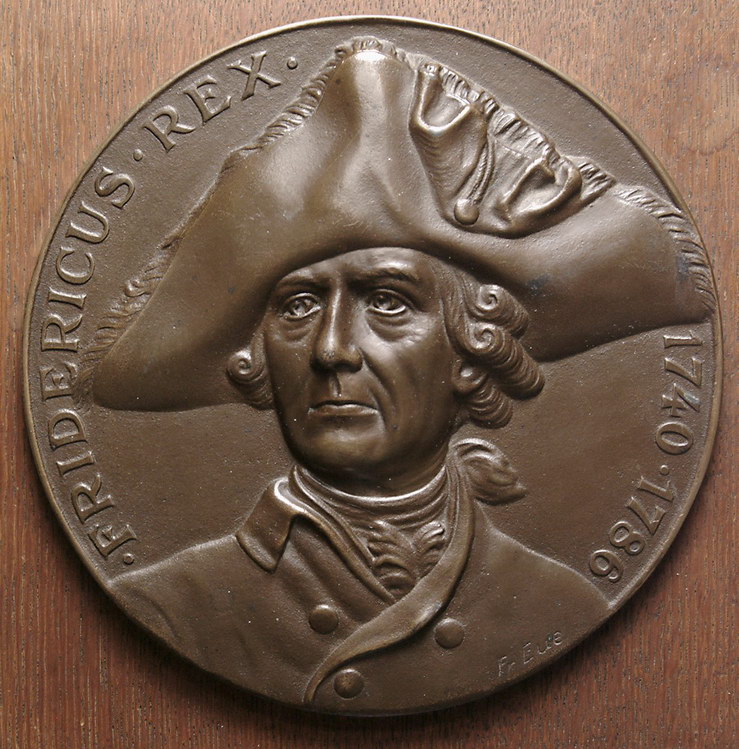 Los-Nummer: Auktion 51 - 472 Altdeutsche Münzen und Medaillen Brandenburg-Preußen Medaillen Friedrichs II. Großes, einseitiges Bronzemedaillon#0Medaille# o.J., von Eue. Brustbild mit Dreispitz von vorn. 155 mm. Auf Holz montiert. Vorzüglich Schätzpreis: 200,- Zuschlag: 160,- |