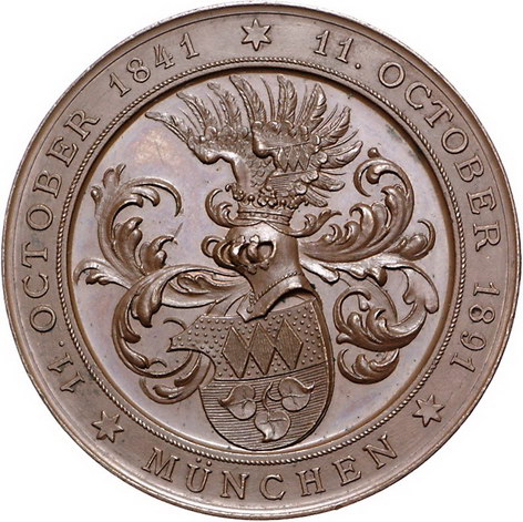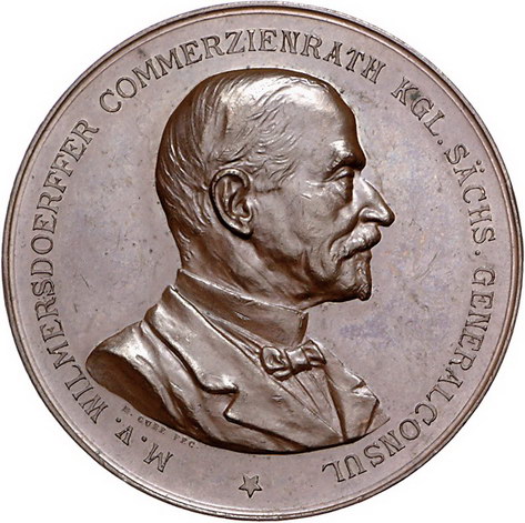 Los-Nummer: Auktion 51 - 2431 Medaillen Numismatik Personen Wilmersdörffer, Max Ritter von *1824, +1903, Bronzemedaille 1891, von Gube. Brustbild nach rechts / In vertieftem Feld Wilmersdörffersches Wappen. Hauser 465. 48,5 mm. Winz. Kratzer, vorzüglich + Schätzpreis: 125,- Zuschlag: unverkauft |