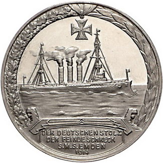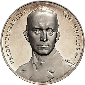 Los-Nummer: Auktion 51 - 2544 Medaillen Erster Weltkrieg Personenmedaillen Müller, Georg Alexander von *1854 Chemnitz, Medaille 1914, von Lauer. Auf den Fregattenkapitän von Müller. Sein Brustbild von vorn / Der Kreuzer 'Emden'. Zetzmann 4051. 33 mm, 17,22 g. Winz. Kratzer, Polierte Platte Schätzpreis: 175,- Zuschlag: 180,- |