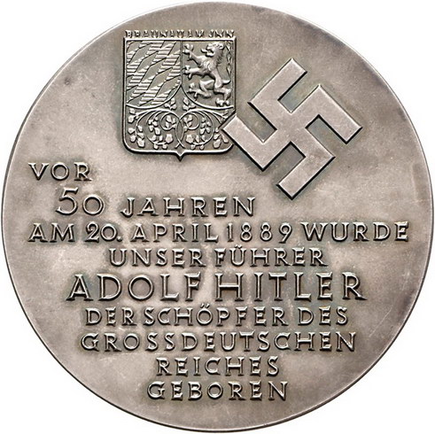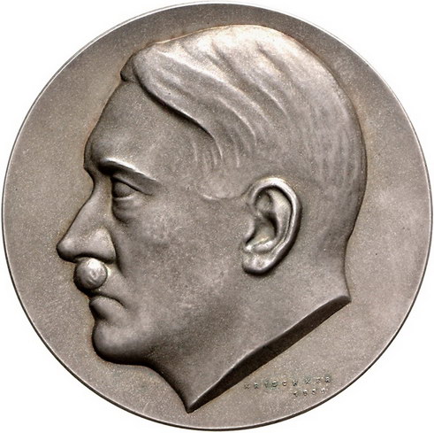 Los-Nummer: Auktion 51 - 2556 Medaillen Drittes Reich Medaille 1939, von Krischker. Auf den 50. Geburtstag von Adolf Hitler. Kopf nach links / Wappen und Hakenkreuz über Schrift. Colb./Hyd. C-117. 59,5 mm, 89,44 g. Mattiert. Prägefrisch Schätzpreis: 250,- Zuschlag: 250,- |