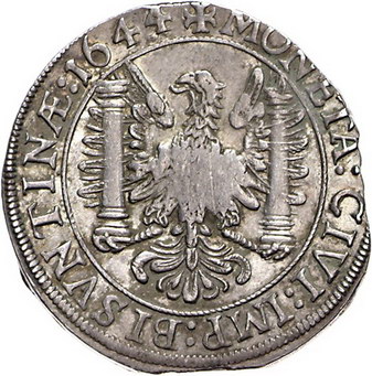 Los-Nummer: Auktion 51 - 3037 Ausländische Münzen und Medaillen Frankreich-Besancon, Stadt 1/2 Taler zu 16 Gros 1644. Belorbeertes Brustbild Karls V. nach links / Adler mit zwei Säulen. C.C.K. M8/1644, PdA. 5412. Kl. Zainende, sehr schön - vorzüglich Schätzpreis: 600,- Zuschlag: 525,- |