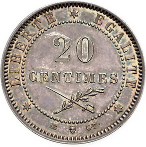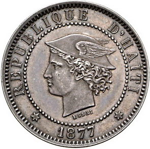Los-Nummer: Auktion 51 - 3124 Ausländische Münzen und Medaillen Haiti Republik nach, Probe 20 Centimes 1877, Dickabschlag in Silber. Merkurkopf / Wert. Geprägt von August Brichaut in Brüssel während der Präsidentschaft Boisrond-Canals. K.M. PE 2. 30 mm, 22,61 g. Schöne Patina. Fast Stempelglanz Schätzpreis: 1250,- Zuschlag: 1000,- |