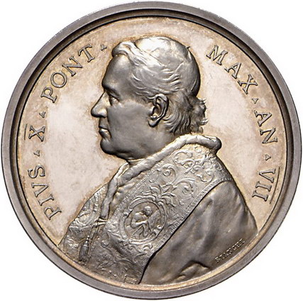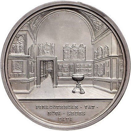 Los-Nummer: Auktion 51 - 3198 Ausländische Münzen und Medaillen Italien-Kirchenstaat Pio X. 1903-1914, MedailleXXXX 1909/10, von Bianchi. Auf die Errichtung des Belvedere-Anbaus für die Neue Pinakothek. Brustbild in Mozetta mit Stola und Calotta nach links / Innenansicht des Saales der Gemälde des 13. Jahrhunderts. Bartolotti 910. 43,5 mm, 38,24 g. Stempelglanz Schätzpreis: 175,- Zuschlag: 170,- |