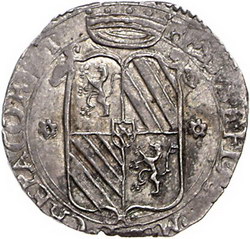 Los-Nummer: Auktion 51 - 3212 Ausländische Münzen und Medaillen Italien-Messerano Besso Ferrero Fieschi 1559-1584, Bianco 1578. Gekröntes vierfeldiges Wappen mit Mittelschild zwischen Rosetten / Blumenkreuz. CNI 2.331.66, Varesi 740/4. Vorzüglich Schätzpreis: 1000,- Zuschlag: 1200,- |