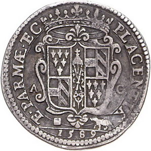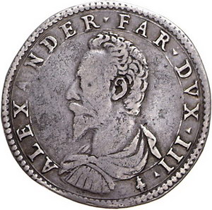 Los-Nummer: Auktion 51 - 3228 Ausländische Münzen und Medaillen Italien-Piacenza Alessandro Farnese 1586-1592, Quarto di ducatone 1589. Brustbild nach links / Gekröntes Wappen, unter Abschnitt Jahreszahl. CNI 9.612.5 (Testone), Varesi 1146/1 (R2). Sehr schön Schätzpreis: 2000,- Zuschlag: 2900,- |