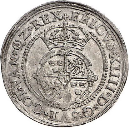 Los-Nummer: Auktion 51 - 3913 Ausländische Münzen und Medaillen Schweden Erik XIV. 1560-1568, 3 Mark 1562. Meereslandschaft, im Hintergrund Stadtansicht von Stockholm / Gekröntes Wappen. S.M. 15, Davenport 8703. Sehr selten. Kl. Schrötlingsfehler, kl. Kratzer, fast vorzüglich Schätzpreis: 5000,- Zuschlag: 4900,- |